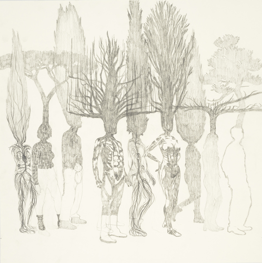 | A Journey Away From The Source, 2017, pencil / paper, 40 x 50 cm | The Movable Forest, 2017, pencil / paper, 45 x 45 cm | As She Stands (Invisibly) Among Them, 2017, pencil / paper, 40 x 50 cm | In Awe Of A Shadow, Passing, 2017 pencil / pigment ink jet print, A3 |